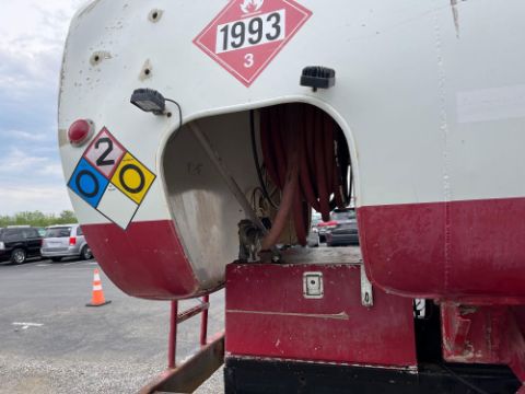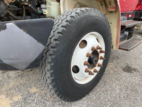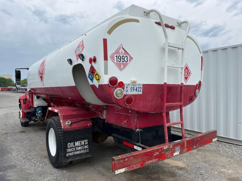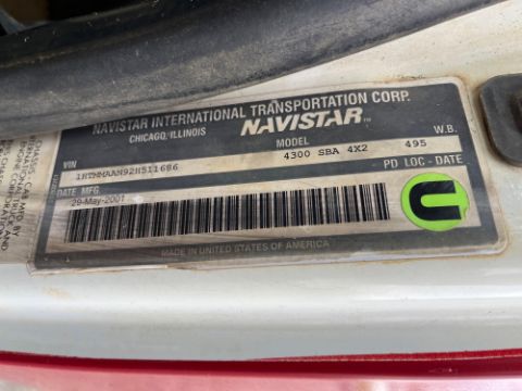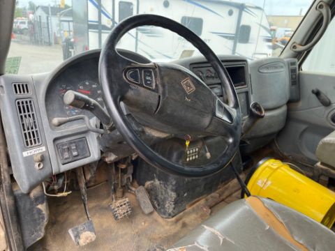 2002 International 4300 S/A Fuel Truck, VIN: 1HTMMAAN92H511686, Miles Showing: 281,352, 7.6L International Diesel Engine, 6-speed Manual Transmission, AC/Heat Controls, AM/FM Radio, Motorolla CB, GVWR: 33,000 lb, Hose Reel, Storage, Known Condition: Starts, Runs, Moves, ABS Light On, Incorrect Key With Truck, Cannot Insert Key Completely, Multiple Cracks In Windshield (14798)