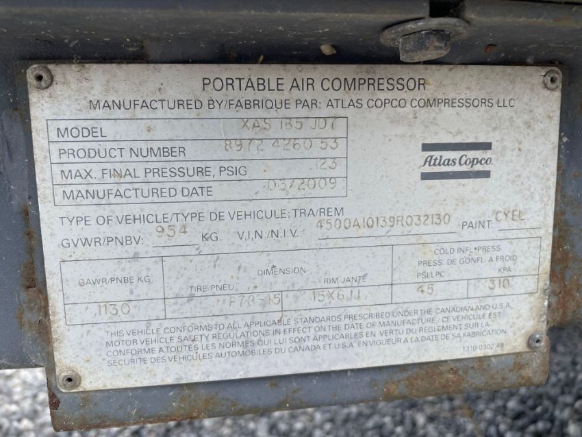 Atlas Copo XAS185 JD7 Air Compressor, SN: 4500A10139R032130, Hours Showing: 1169, John Deere Diesel Engine, Known Condition: INOP, Makes Clicking Sound (17193)