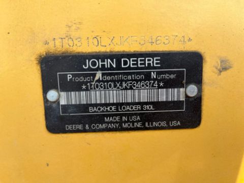 2019 John Deere 310L 4WD Backhoe Loader, SN: 1T0310LXJKF346374, Hours Showing: 3,056, John Deere Diesel Engine, Shuttle Shift Transmission, Joystick & Foot Controls, 86" Loader Bucket, 24" Digging Bucket, Outriggers, Known Condition: Starts, Runs, Moves (17116)