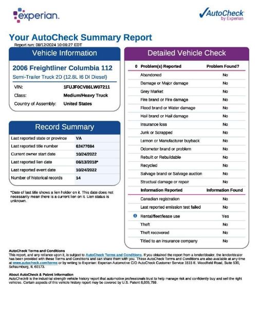 2006 Freightliner Columbia 112 Day Cab T/A Road Tractor, VIN: 1FUJF0CV86LW07211, Miles Showing: 786,099, Mercedes Diesel Engine, 10-Speed Manual Transmission, AC/Heat Controls, AM/FM Radio, Dif Locks, 5th Wheel Slide, Engine Brake, Suspension Drop, Wet Line (Disabled), (Unit 314), Known Condition: Starts, Runs, Moves (16483)