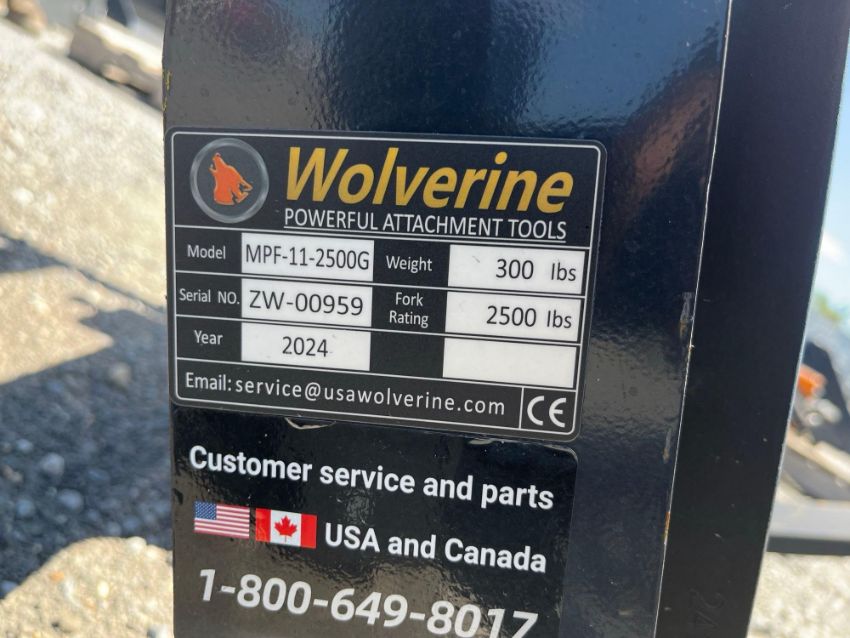2024 Wolverine MPF-11-2500G Mini Skid Steer Pallet Fork Attachment, SN ZW-00959, 31" Long Forks, Rating: 2500 lb, Package: 43.5"Lx35"Wx35.5"H, 300 lb, Known Condition: New (17141)