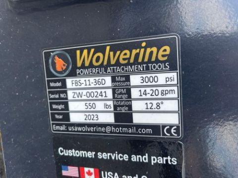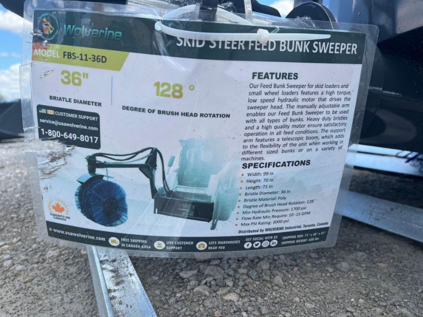 2024 Wolverine FBS-11-36D Skid Steer Feed Bunk Sweeper, SN ZW-00241, Package: 71"Lx45"Wx31"H, 550 lb, Known Condition: New (17143)