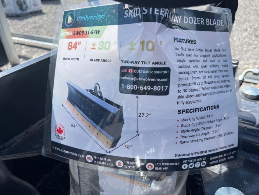 2024 Wolverine SWD-11-84W 6-Way Dozer Blade With Controller, SN ZW-00913, 84" Wide, Blade Angle: 30 deg, Package: 86"Lx39"Wx29"H, 1050 lb, Known Condition: New (17124)