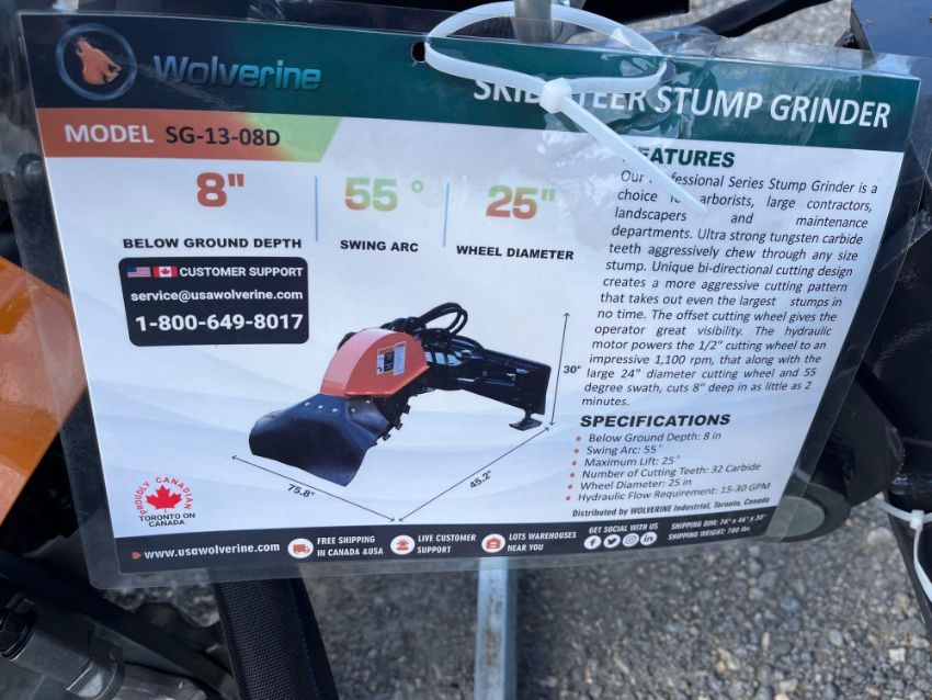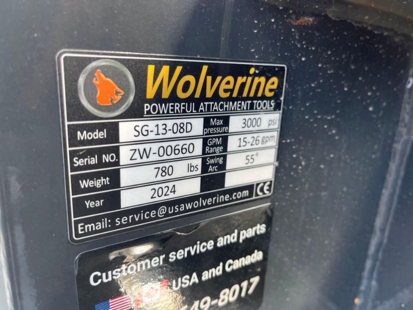 2024 Wolverine SG-13-08D Skid Steer Stump Grinder With Controller, SN ZW-00660, Swing Arc: 55 deg, Package: 48"Lx66"Wx33"H, 780 lb, Known Condition: New (17147)