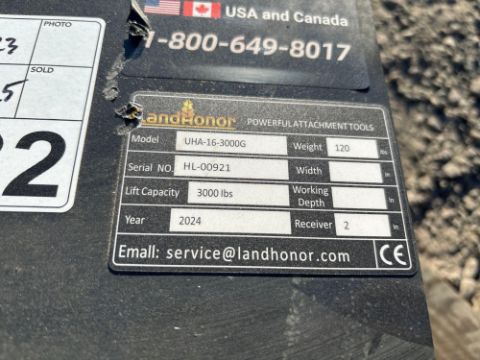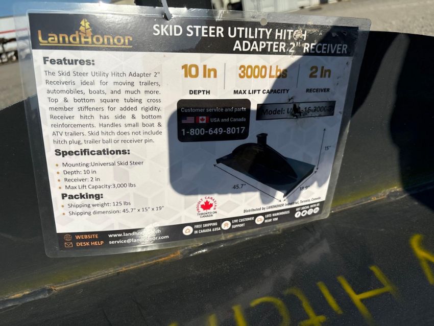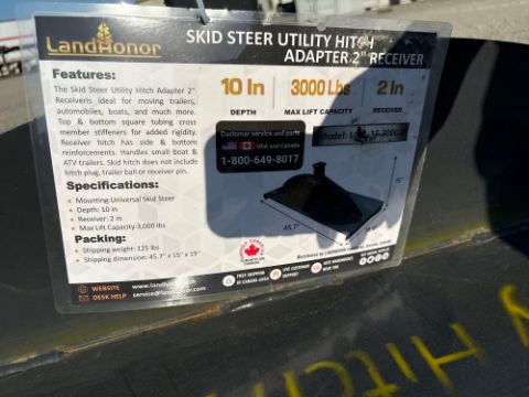 2024 Landhonor UHA-16-300G Skid Steer Utility Hitch Adapter 2" Receiver, 45"Wx15"Dx19.6"H, Weight 125lb, Max Lift Capacity: 3000lb, Known Condition: New (17832)