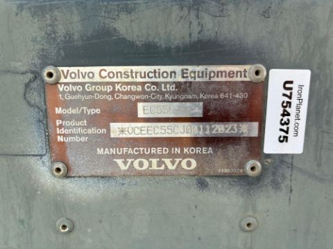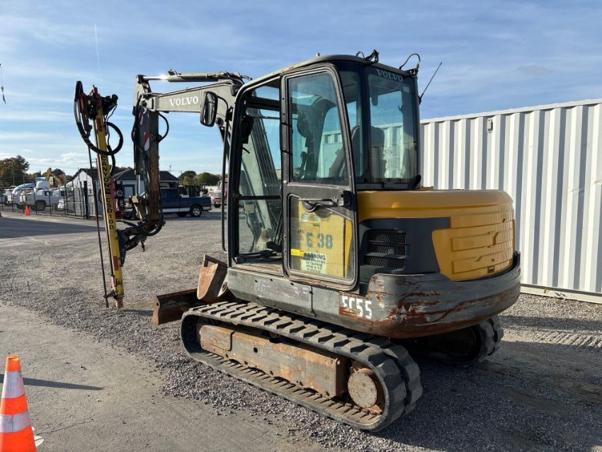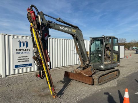 2011 Volvo EX55C E38 Mini Excavator with Canyon CSD-100 126" Drill Attachment And 18" Bucket, SN: VCEEC55CJ00112023, Hours Showing: 4,617, Volvo Diesel Engine, Joystick & Foot Controls, 75" Push Blade, AC/Heat Controls, Rubber Tracks, Enclosed Cab, Undercarriage Approx. 85%, Known Condition: Starts, Runs, Operates (17901)