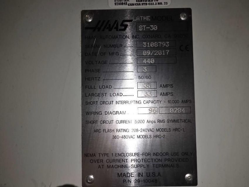 See Build Sheet Photo from Haas, Sn: 3108793,  3 inch Bar Capacity, Auto Tool Presetter, Bolt-on Style Turret, Jorgensen Chip Conveyor, Parts Catcher, 440v/60/3PH, Condition: Operational - See Video